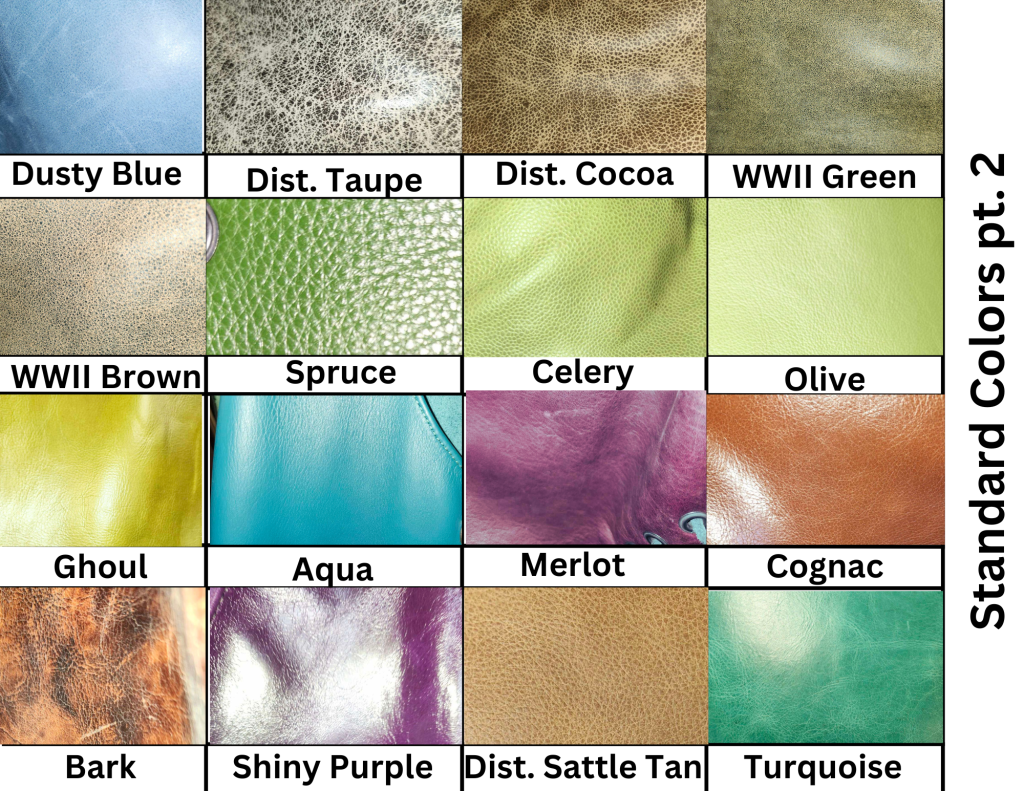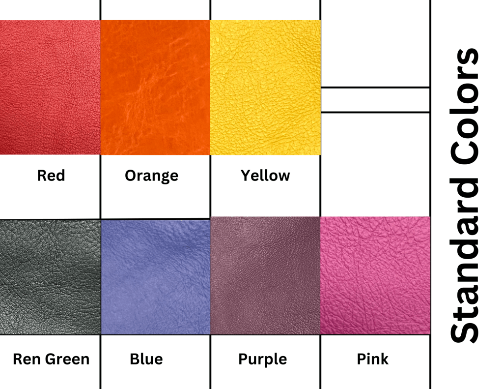 PLease Note that all dye lots vary and could be different shades or textures then what is pictured (PLEASE SEE LEATHER COLORS AT THE BOTTOM OF THE PAGE)